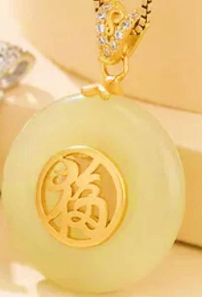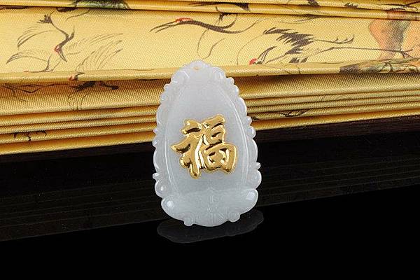 佩戴翡翠黃金福鍊「福」字與翡翠結合在一起。此福被民間稱為「福中有壽,福壽雙全」。右上為「多」,下為「田」,左似「子」、「才」,右為「壽」,故整個「福」字又可分解為「多子、多才、多田、多壽、多福」,是古往今來、獨一無二的「五福」合一。其中的「田」尚未封口,寓意鴻福無邊、福氣無邊,蝙蝠(「蝠」音同「福」)倒掛,寓意福到,更是雙福臨門之意。加上翡翠與生俱來的避邪保平安的特性,使得「康熙賜福」金鑲翡翠系列成為大福翡翠中的點睛之作佩戴翡翠黃金福鍊功效價值。