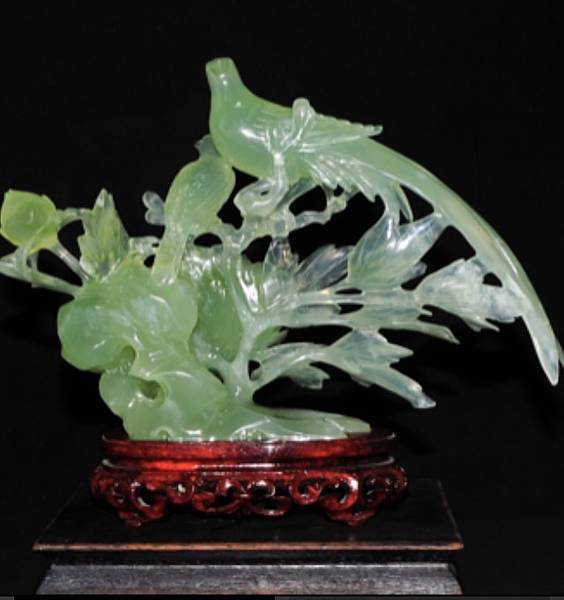 翡翠綬帶鳥中的“綬”與壽諧音,表示長壽之意。綬帶鳥是一種吉祥寓意的鳥類,在中國的傳統工藝品中,常借用綬帶鳥的美好寓意表達良好的祝願。翡翠中綬帶鳥常與蝙蝠或如意組成圖案,稱作“福壽雙全”、“福壽如意”。如果要用翡翠綬帶鳥作為禮物贈送他人,最適合不過的就是送給老人了。