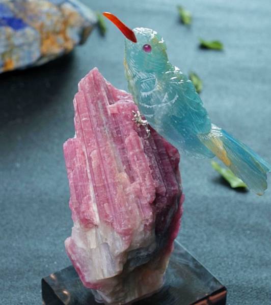 翡翠綬帶鳥的尾羽很長,像帶子一樣,而且壽命是小型鳥類中野外存活壽命最長的,人們才將綬帶鳥的形象與翡翠結合起來,象徵代代長壽、代代有福。同時,鳥類是天空的精靈,象徵著自由和美麗。